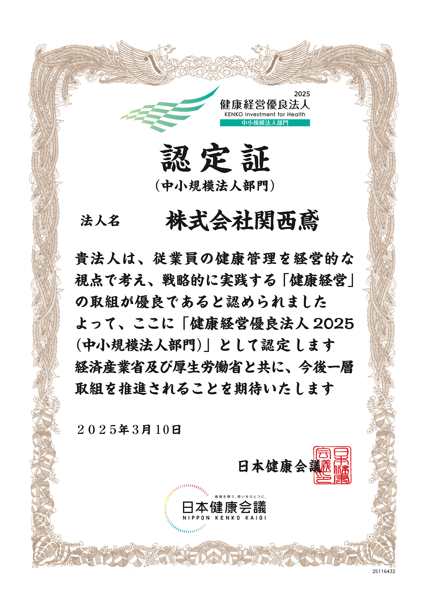 経済産業省が認定している「健康経営優良法人認定制度」より、中小規模法人部門で健康経営優良法人2025に認定されました。
